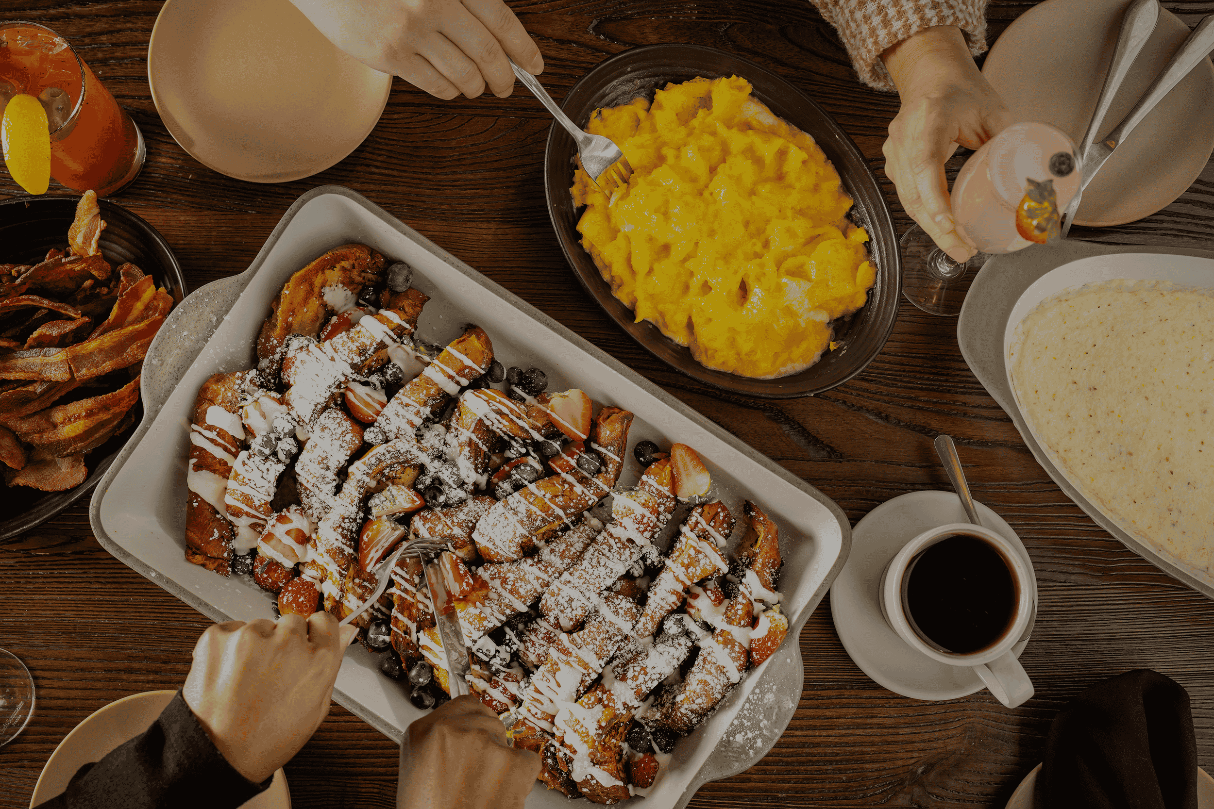 Unmatched Flavor – Our indulgent, flavor-packed menu features Southern classics with a modern edge, from creamy Shrimp & Grits to our famous Stacked French Toast.